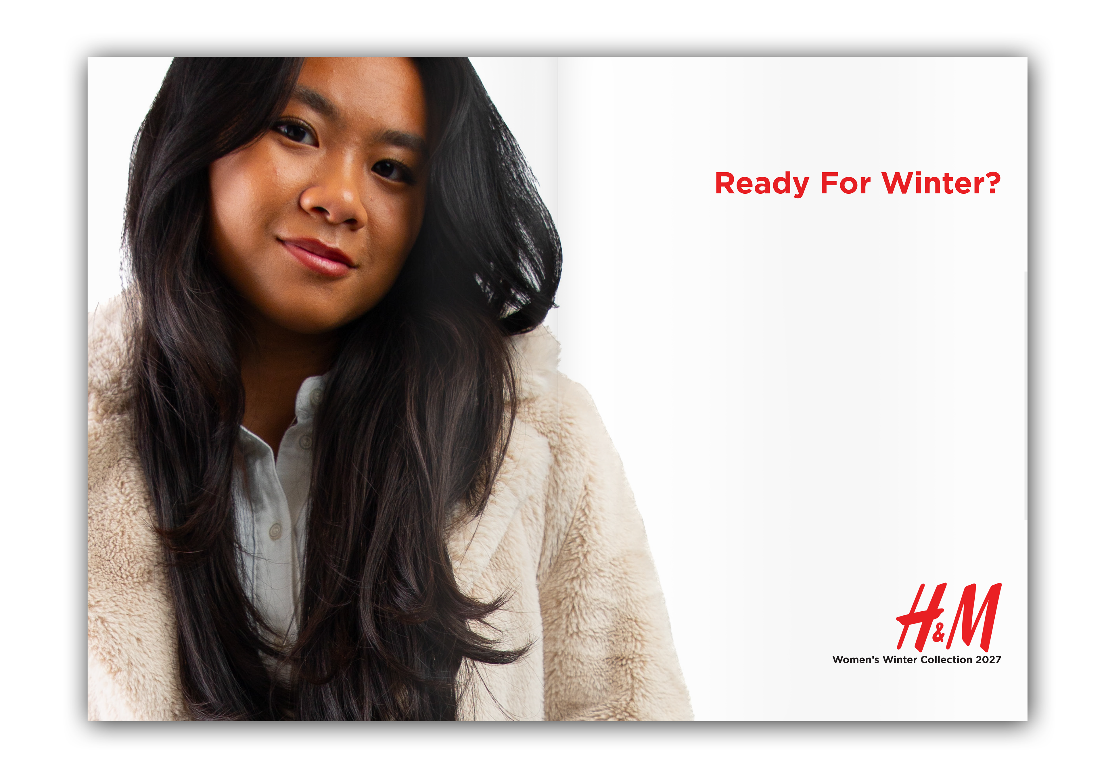 I designed a catalog for H&M's 2027 Women's Winter collection, blending the brand’s iconic red into the design while adding a fresh, personal twist. I reimagined the layout with softer compositions and refined spacing to elevate H&M’s modern and contemporary aesthetic. The overall design balances the brand’s bold identity with a more subtle and polished look.